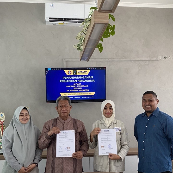 Smegione (26/9) – SMK PGRI 1 Tangerang melaksanakan kegiatan penandatanganan Memorandum of Understanding (MoU) dengan PT. Mitsuba dan Bank Syariah Indonesia. Kegiatan ini merupakan langkah strategis dalam memperluas jaringan kerja sama sekolah dengan dunia industri dan lembaga keuangan, guna mendukung peningkatan mutu pendidikan serta penguatan kompetensi peserta didik.